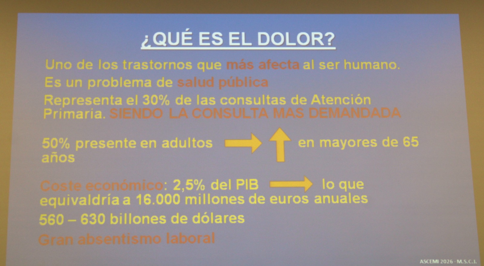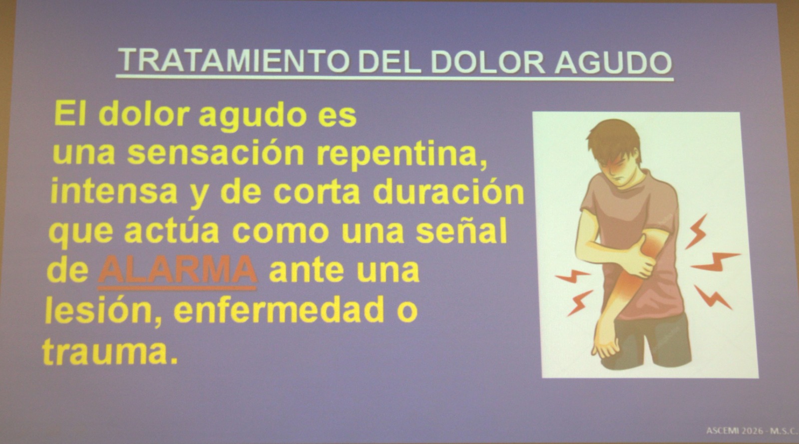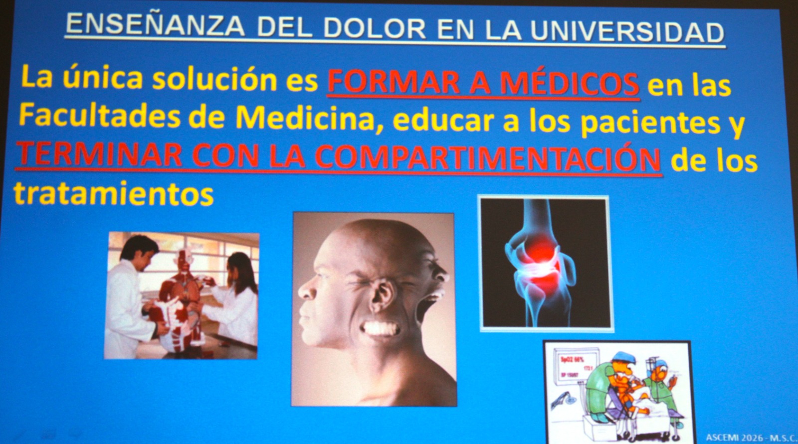 La definición y tipos de dolor (crónico y agudo), el dolor como problema de salud pública, el dolor en la Historia de la Umanidad, finalidad de las clínicas del dolor y las unidades que lo tratan, enseñanza del dolor en la Universidad, diversos tratamientos para paliarlo…