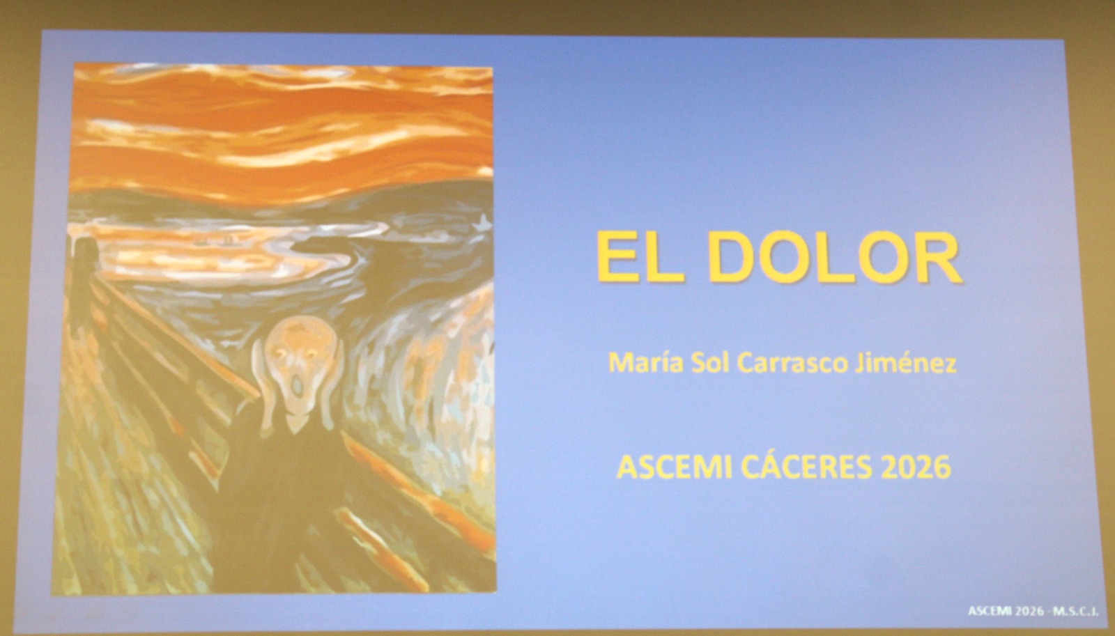 La Asociación de ASCEMI, Amigos del Cengtro de Cirugía de Mínima Invasión Jesús Usón, propuso la siguiente conferencia destinada para sus asociados/as o hasta completar aforo. La impartió Dª Mª. del Sol Carrasco Jiménez (catedrática de Anestesiología de la Universidad de Cádiz), el pasado día 16 de febrero de 2026 , su temática fue «El Dolor». Asistieron más de cien personas y tuvo lugar en el Salón de Actor de la Caja Almendralejo.