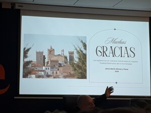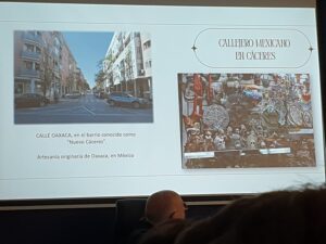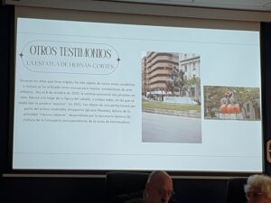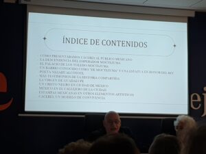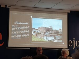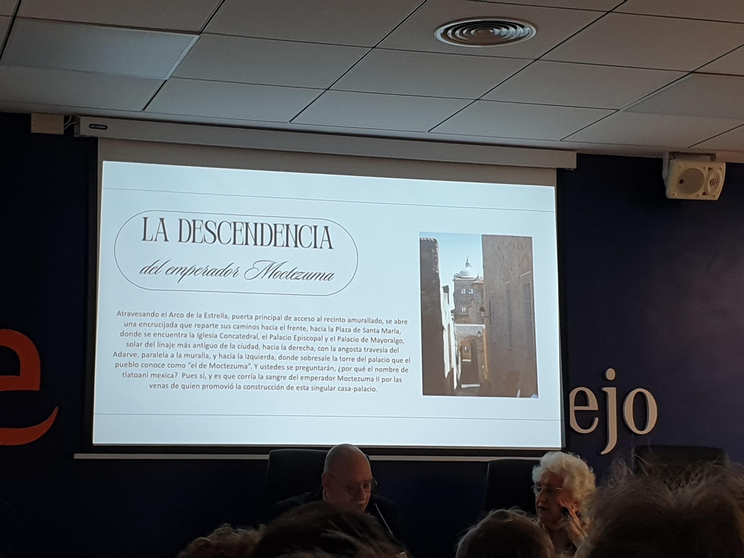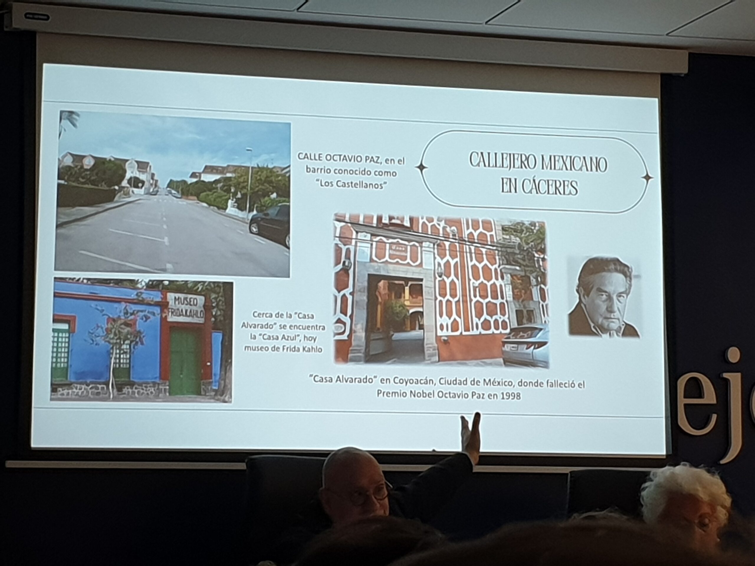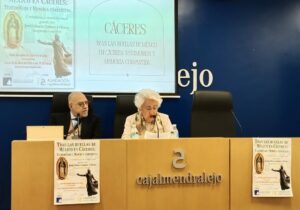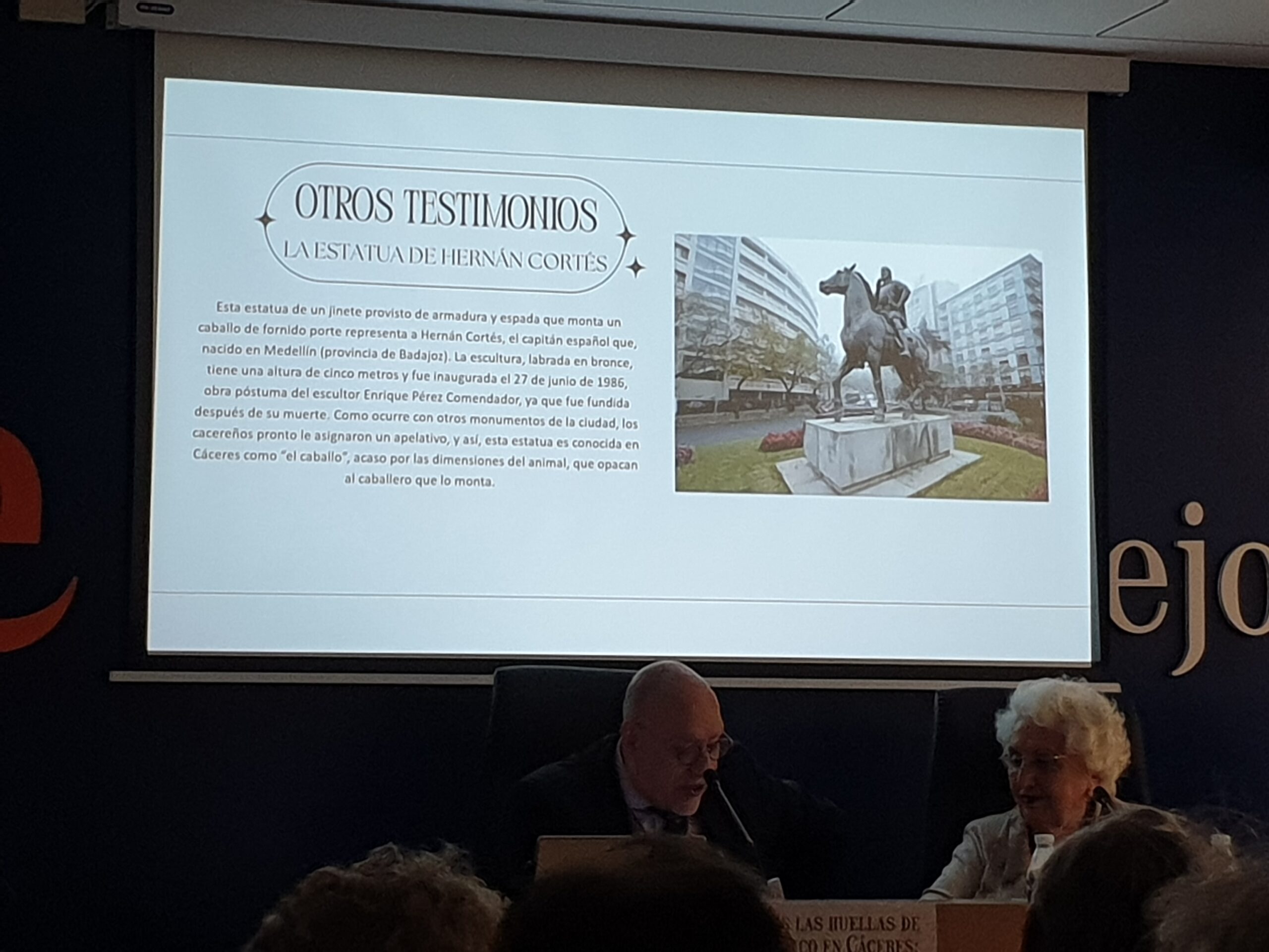 El lunes, día 13 de abril de 2026, D. Jesús María Gómez y Flores, a propuesta de la Asociación de ASCEMI, imparte una conferencia en el Salón de Caja Almendralejo de Cáceres, titulada «Tras la huella de México en Cáceres». El ponente demostra una preparación extraordinaria de este tema monográfico, muy documentado por sus múltiples lecturas como lo manifiesta citando trabajos de otros autores y sus fotografías de Cáceres relacionadas con México.